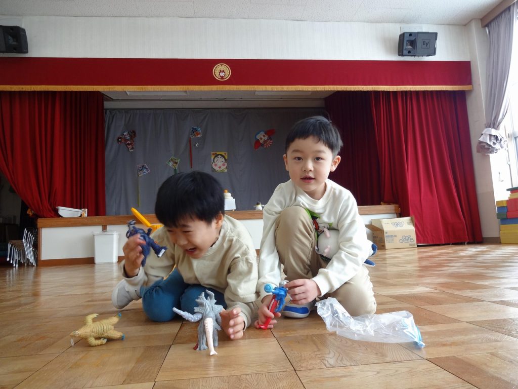 思い思いに持ってきたおもちゃを2階のお遊戯場へ持っていき、