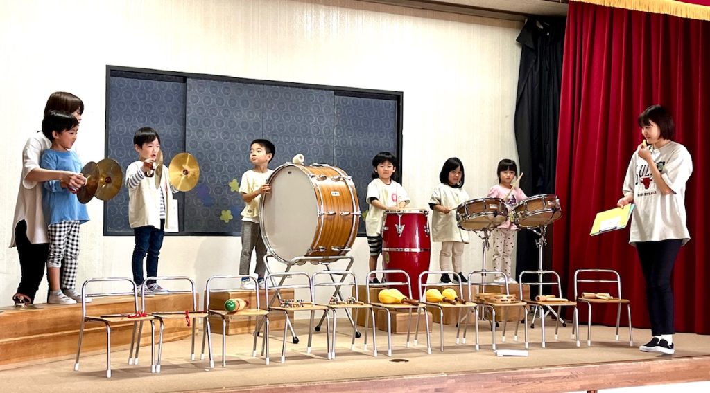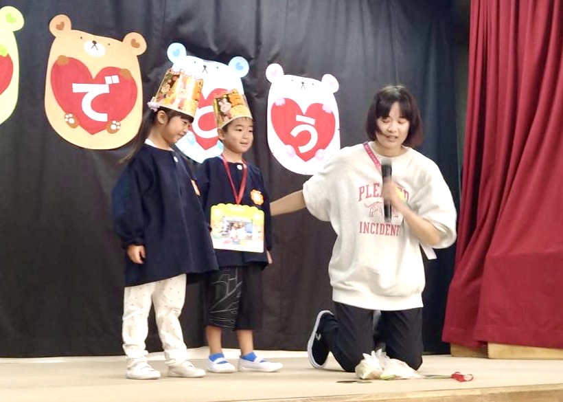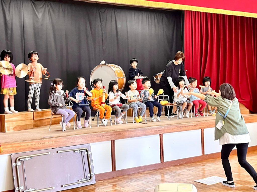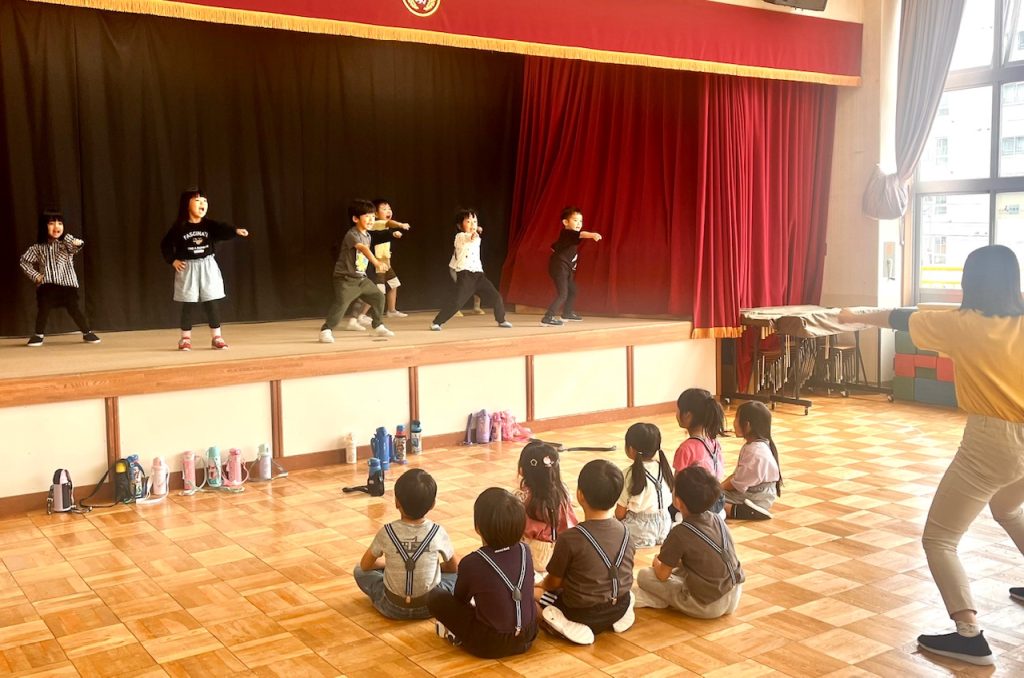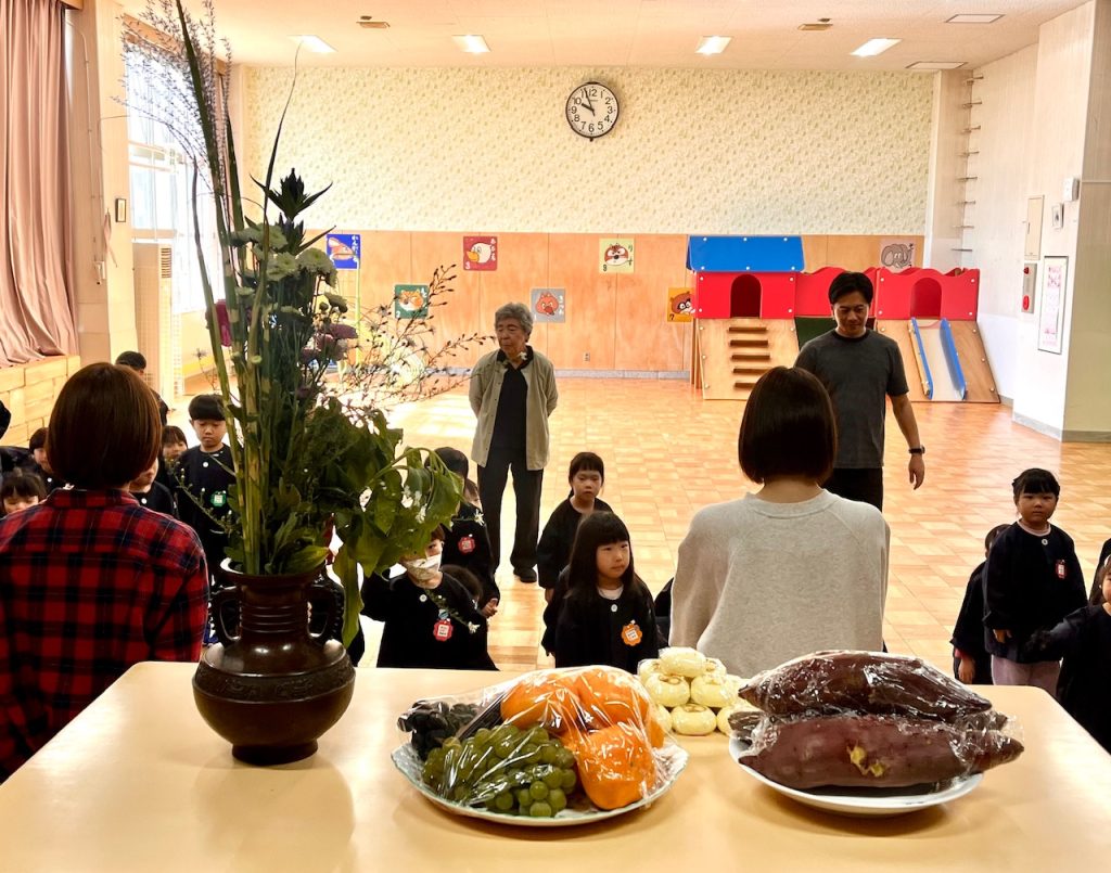 ステージの上には、すすきやほおずき、ぶどうやさつまいもなど、秋の美味しそうな果物がたくさん🎵