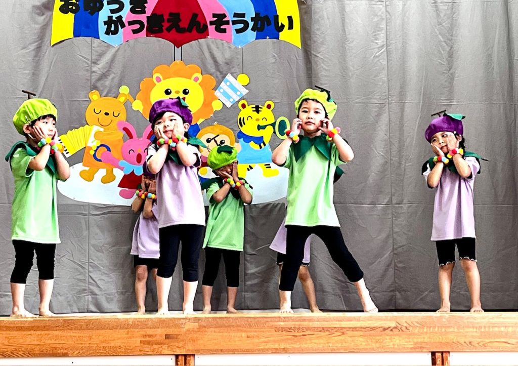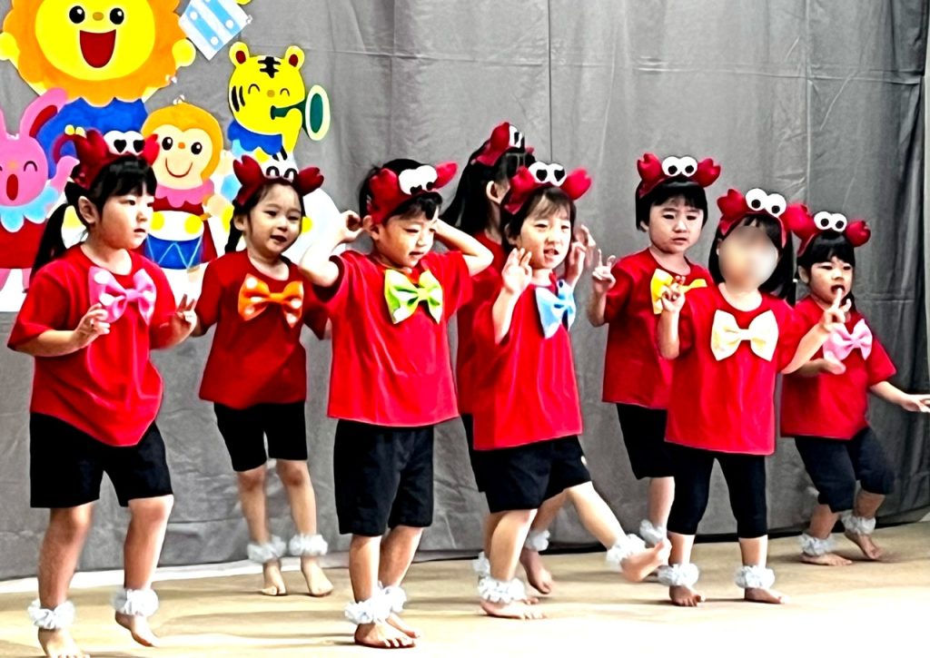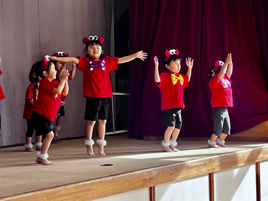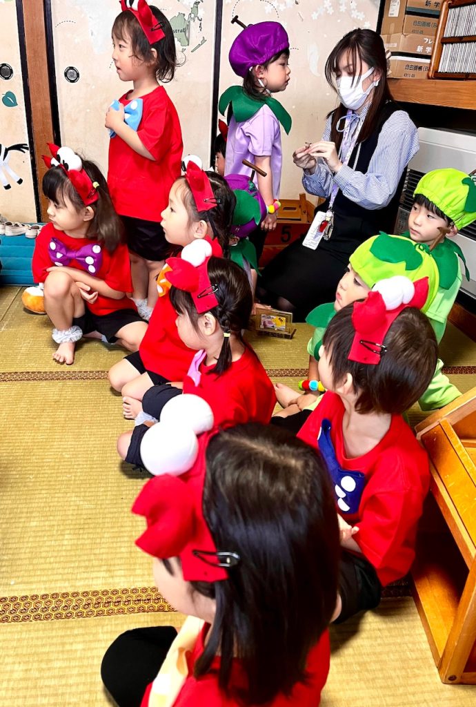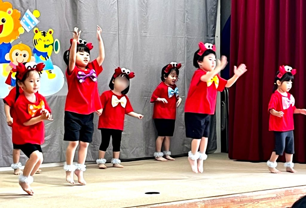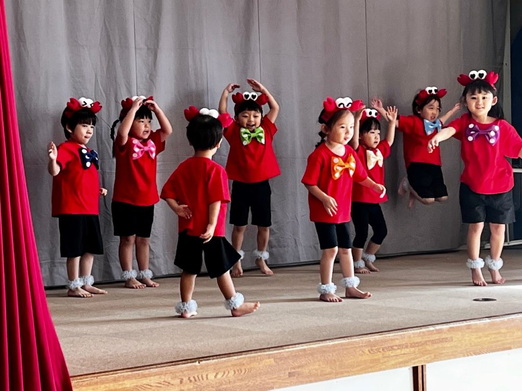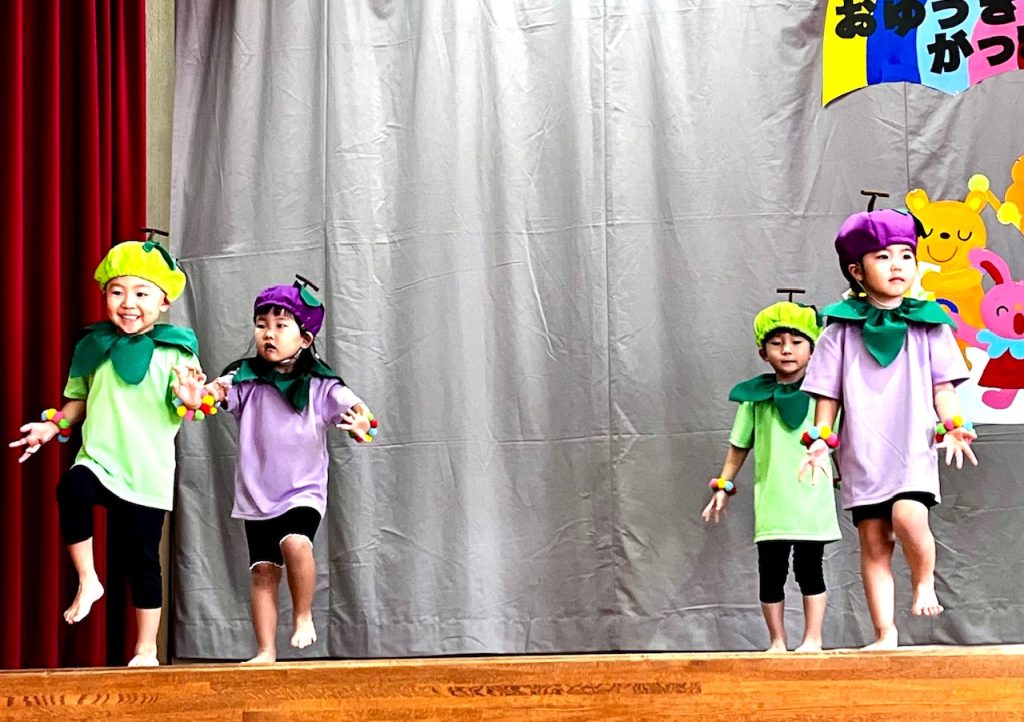 年中さんのお遊戯は「踊るロックンモンスター👻」「もんじゃってなんじゃ✨」… 可愛い衣装と小道具を持って、元気いっぱい踊ってくれました😆
