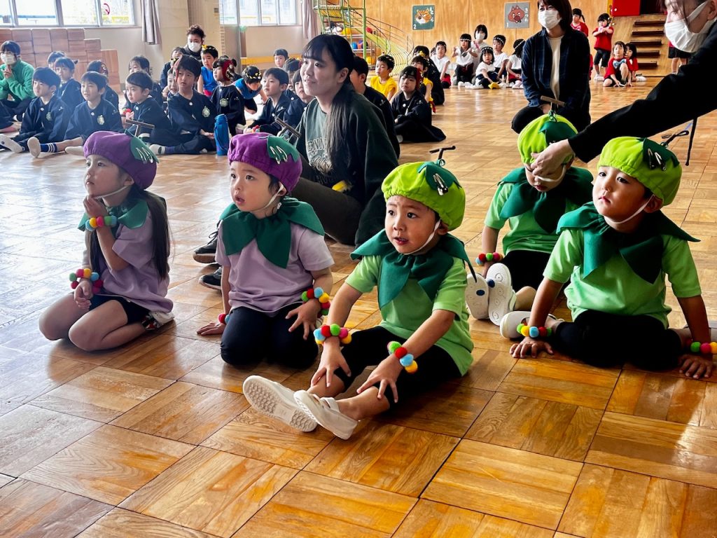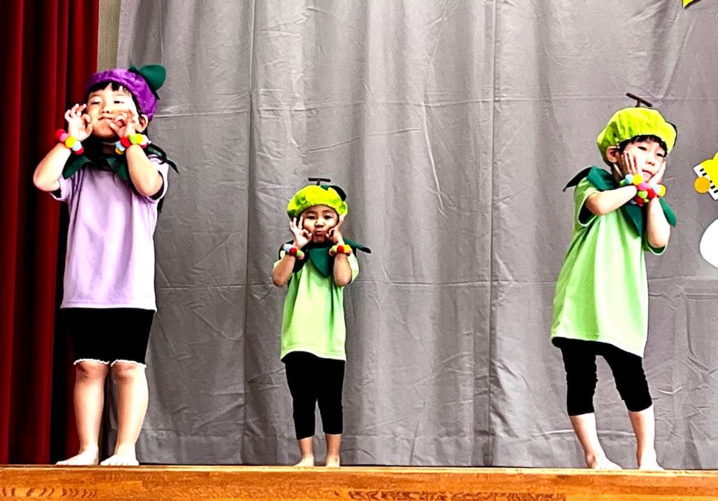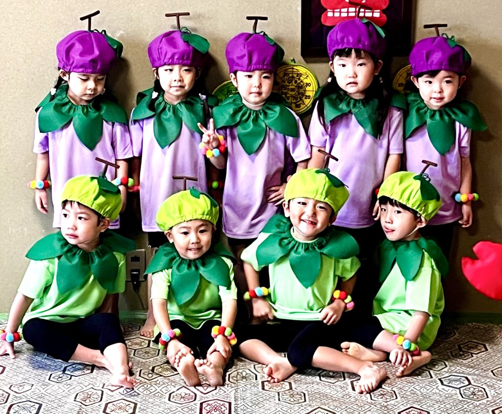 可愛い衣装を着て「カニピース🦀」「ぼくだちぶどう🍇」をノリノリで踊ってくれました🎵
