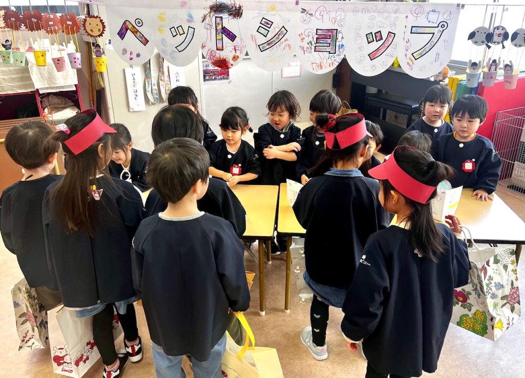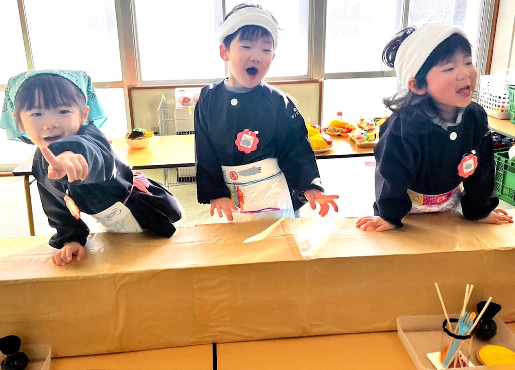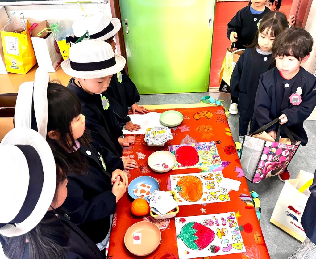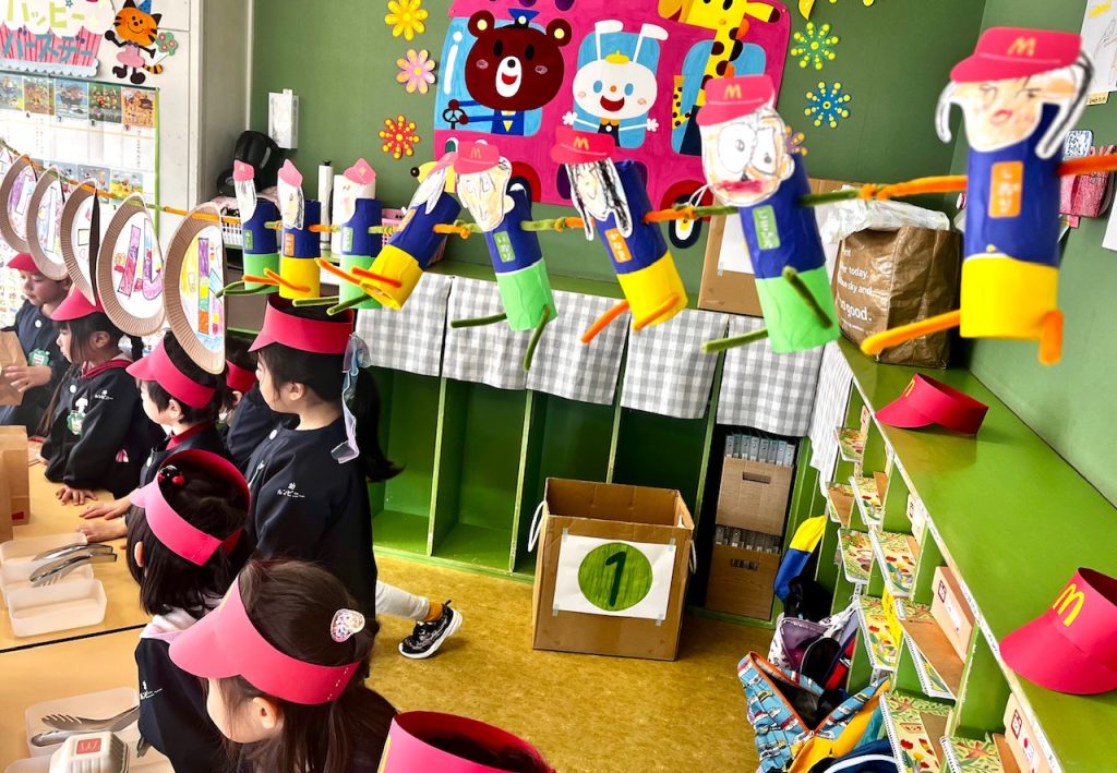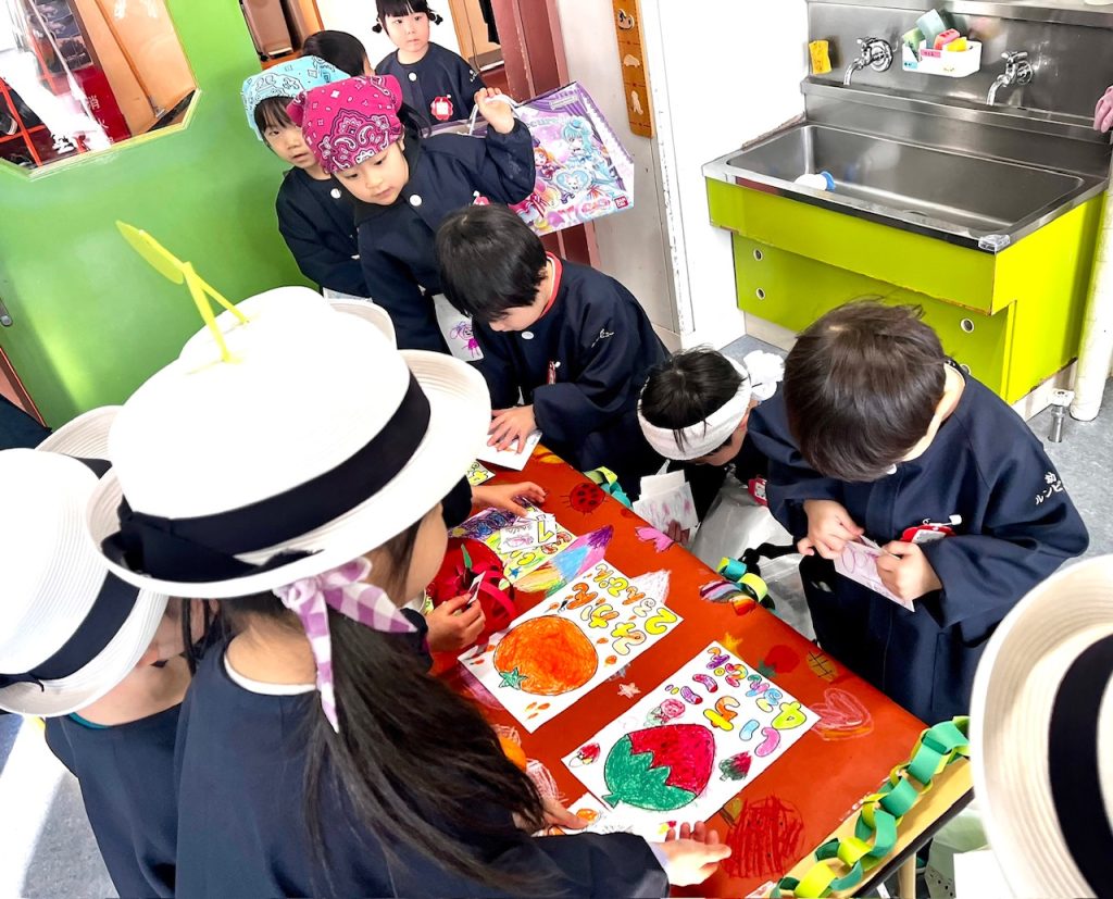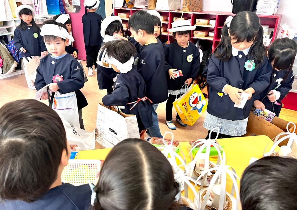 年中長さんからは「欲しい物買えたー❗️」の声がたくさん聞けたり、年少さんも初めてのお店屋さんごっこでしたが、大きな声で「いらっしゃいませ」していたり、欲しい物を買いにいったりと、とても上手にお買い物できていました❗️
