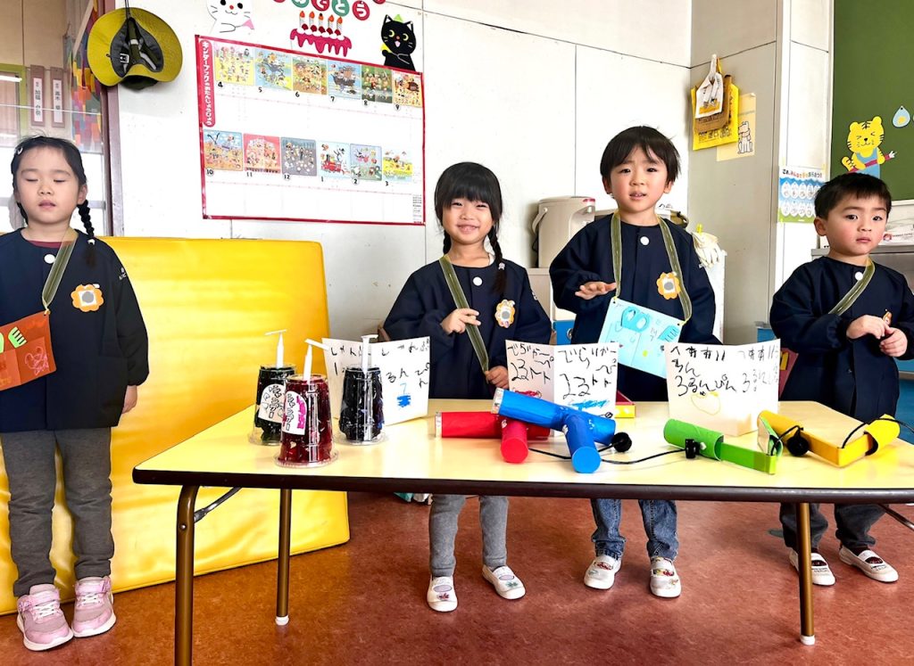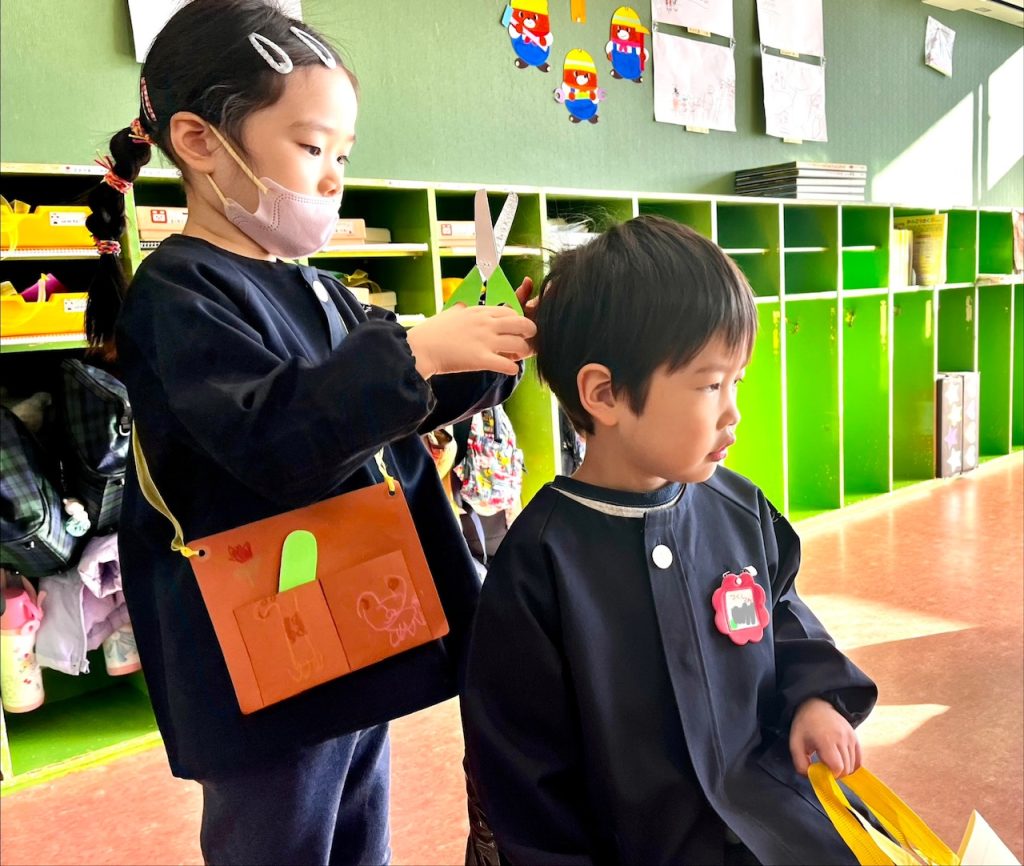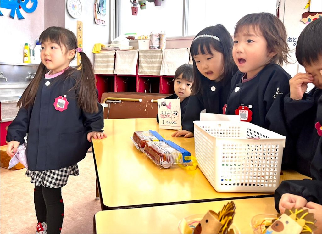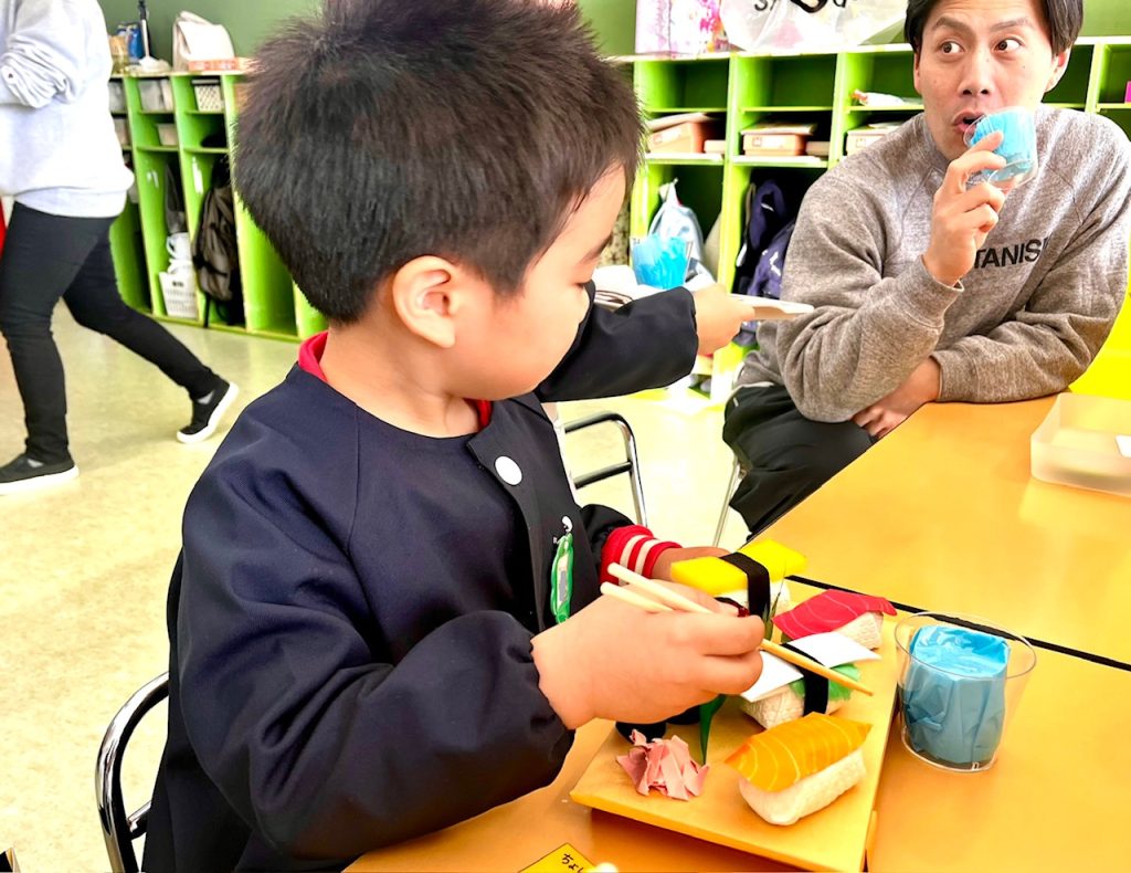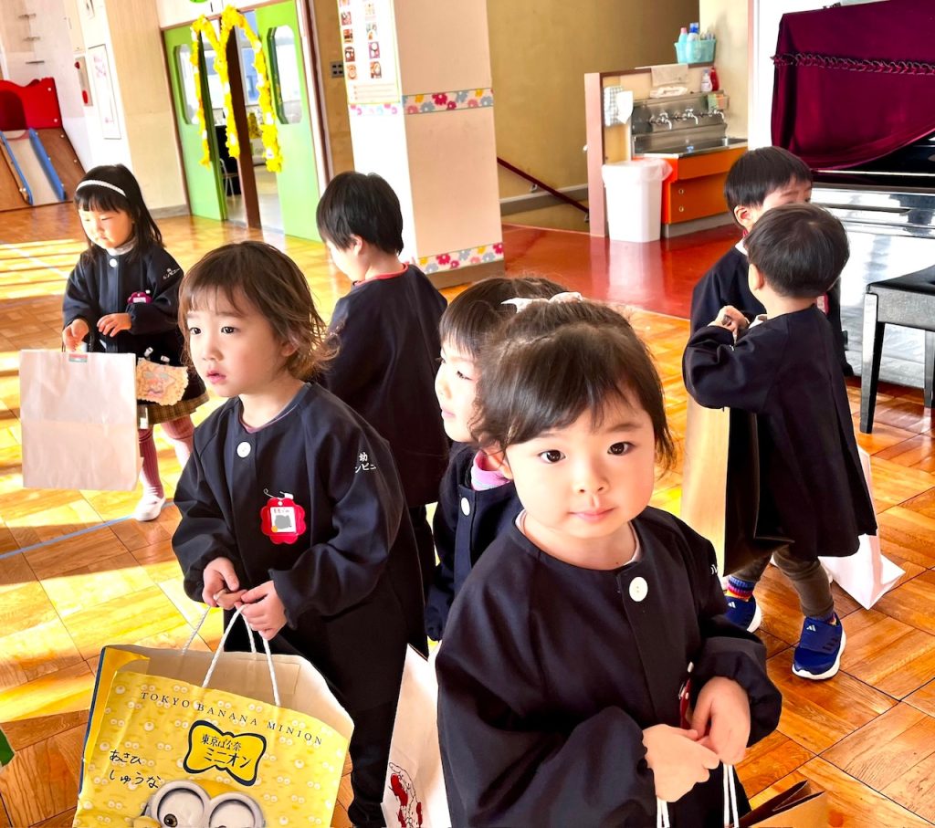 年中長さんからは「欲しい物買えたー❗️」の声がたくさん聞けたり、年少さんも初めてのお店屋さんごっこでしたが、大きな声で「いらっしゃいませ」していたり、欲しい物を買いにいったりと、とても上手にお買い物できていました❗️