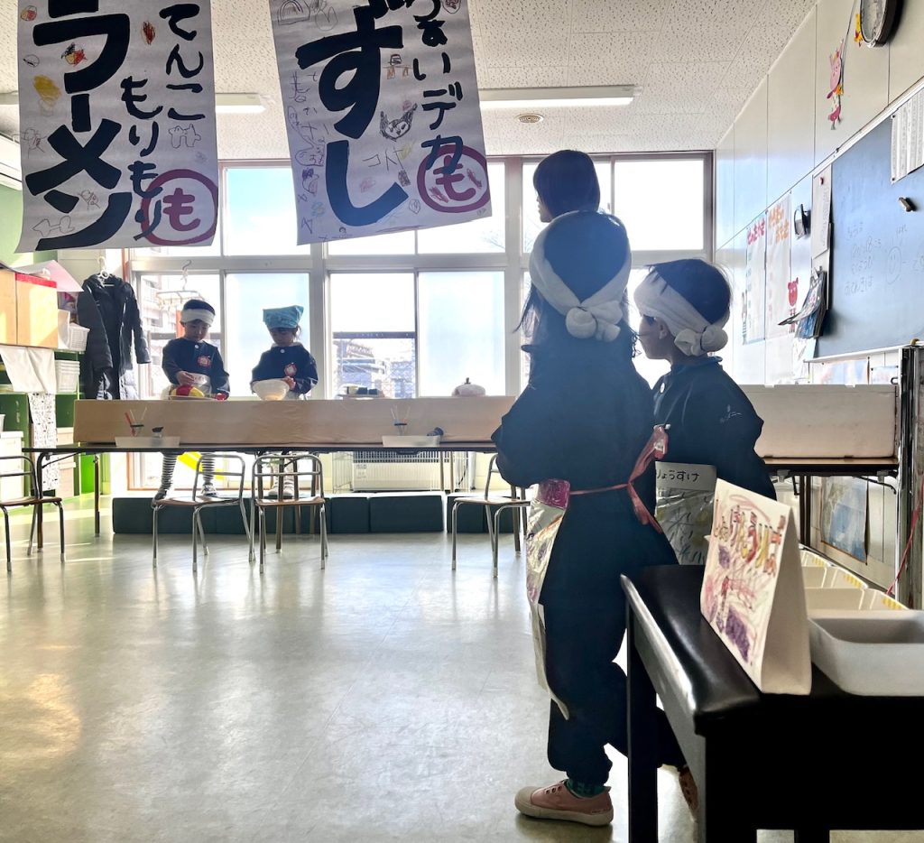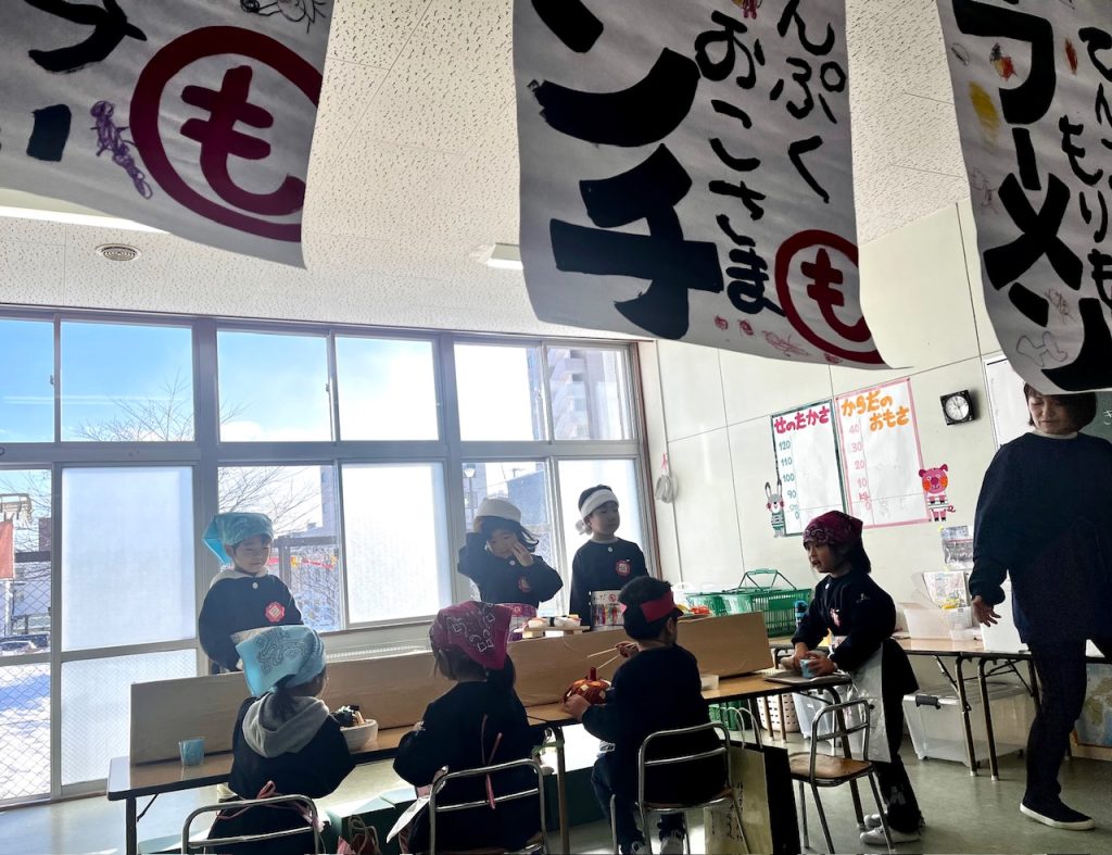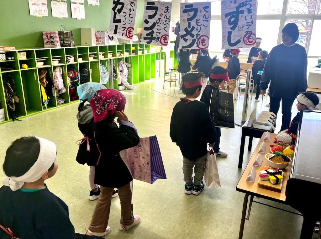 こちらも欲しい物目指してみんなお店に向かっていました。あちこちのお店から「いらっしゃいませー❗️」の大きな声が聞こえてきて、お店屋さんもお客さんもとても楽しんでいました♪