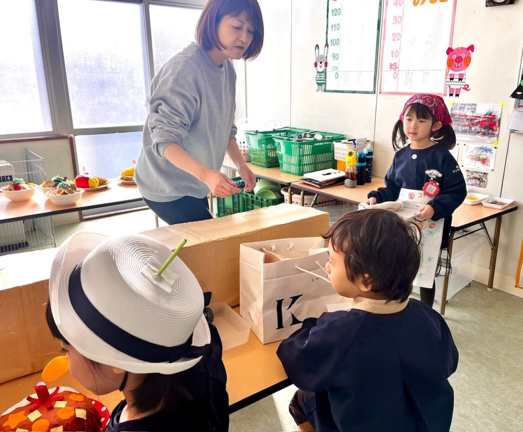続いて、1グループさんがお客さん✨、2グループがお店屋さん✨に交代してお店屋さんごっこスタート‼️