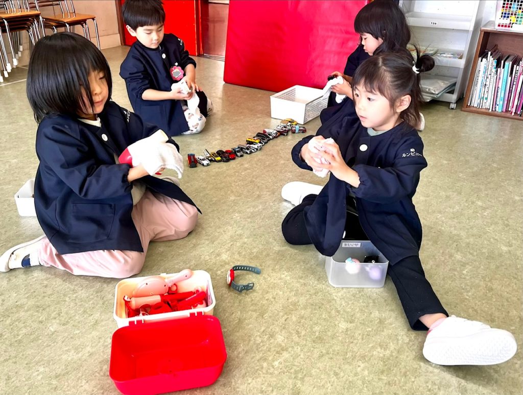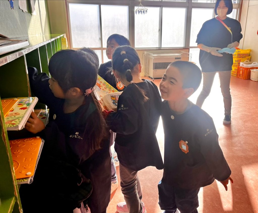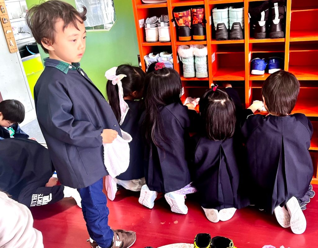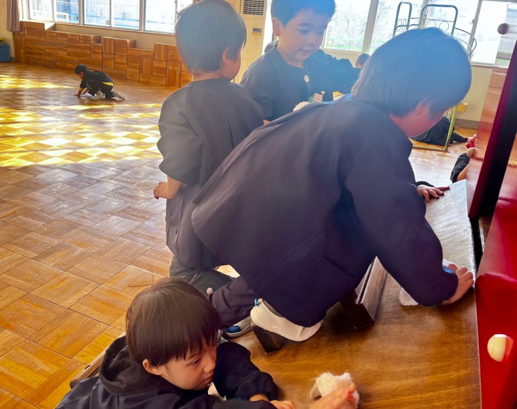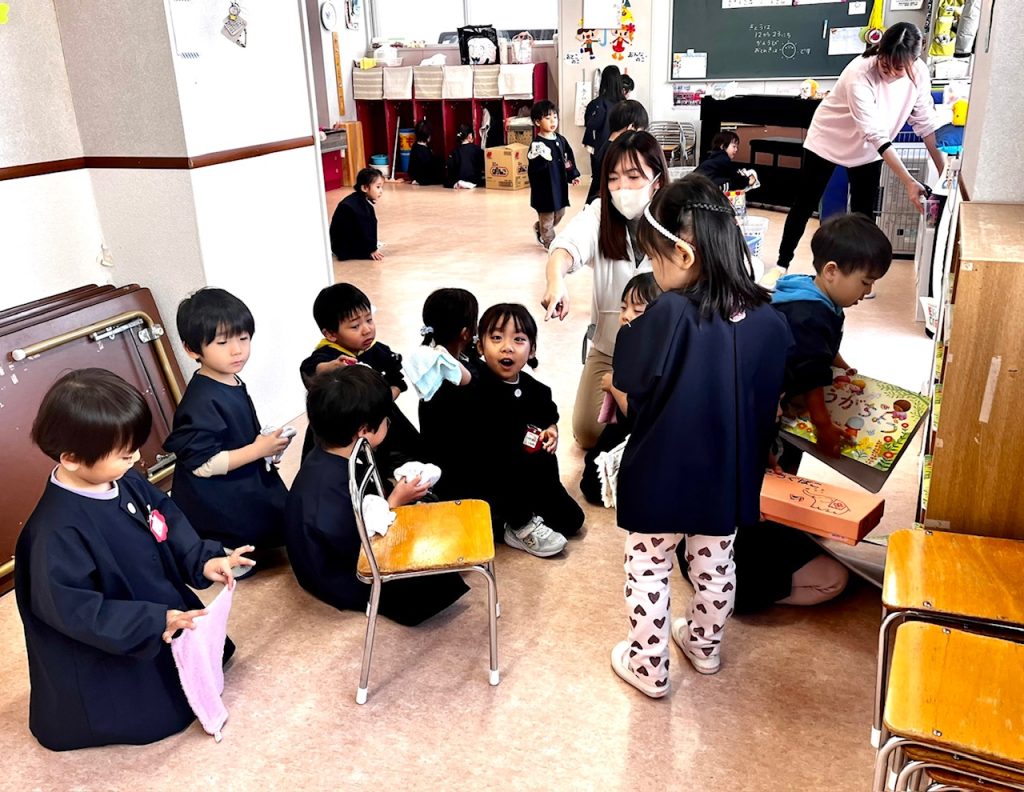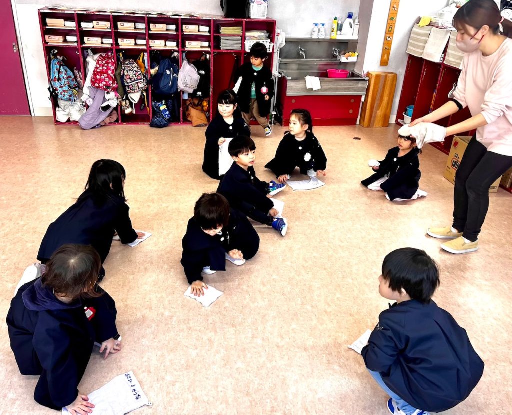 靴箱や廊下、お遊戯場まで全園児がピカピカにしてくれて、雑布が真っ黒に。