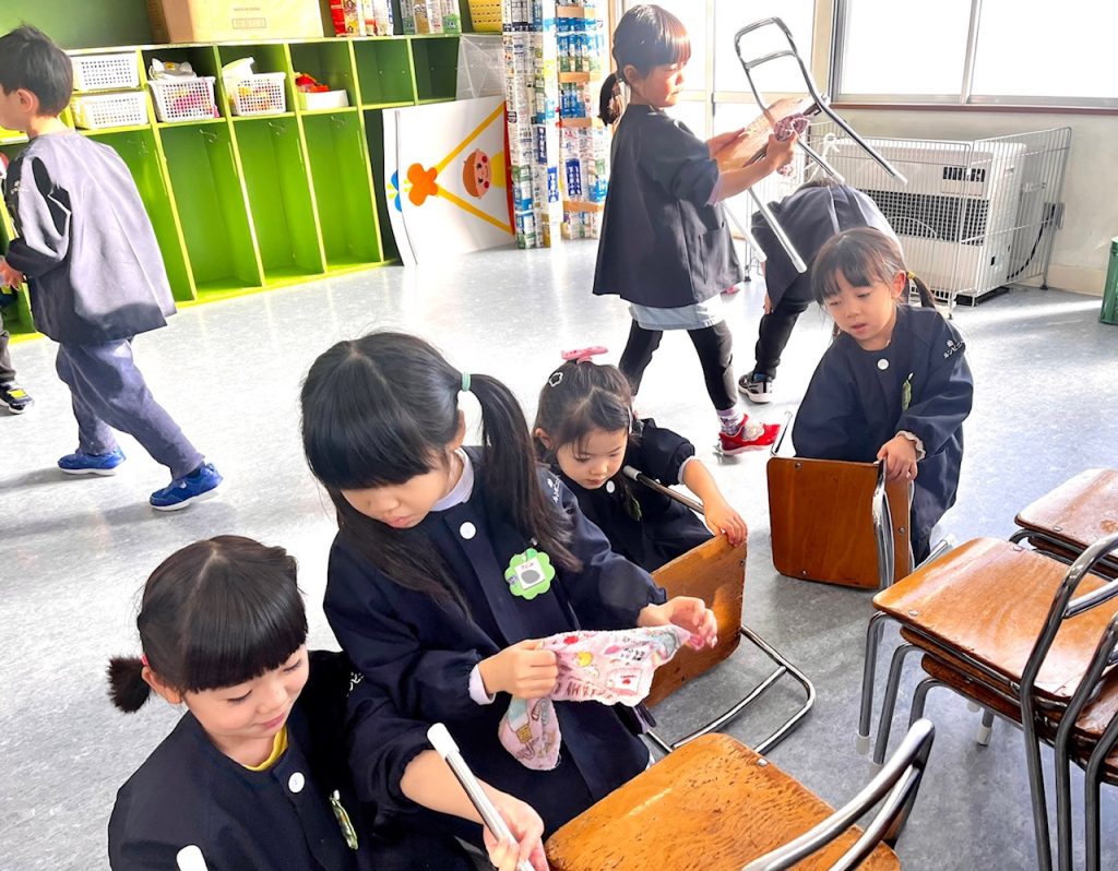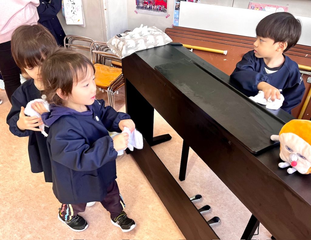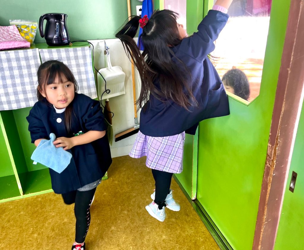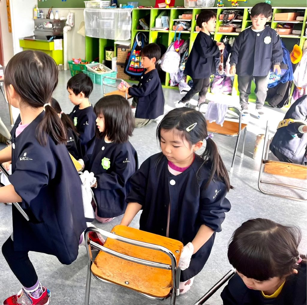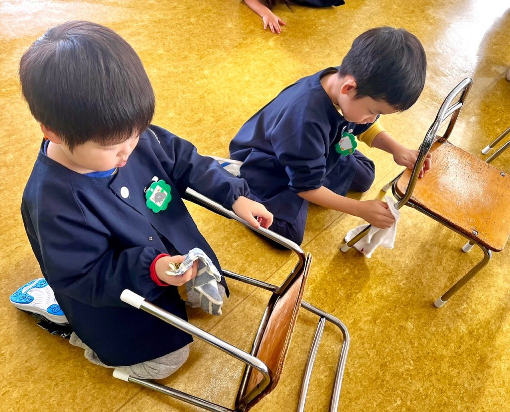 椅子やお道具棚、など一生懸命拭いてくれました😆