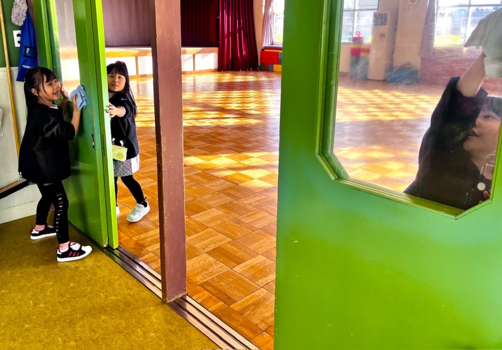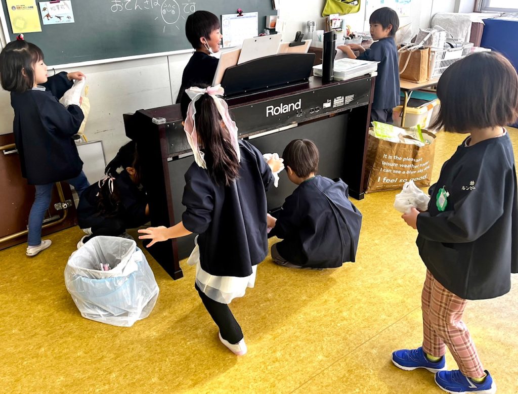 と、気合満々な子ども達。雑布を持って、まずは教室からスタート‼️