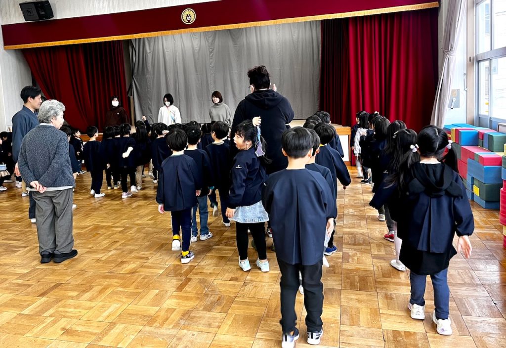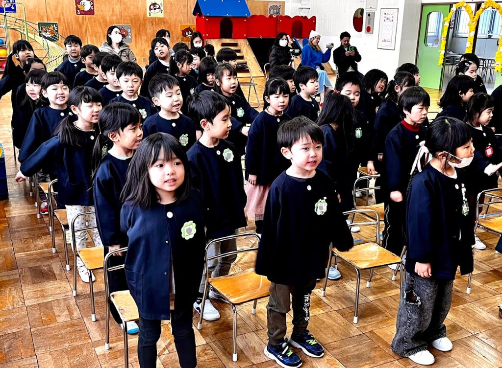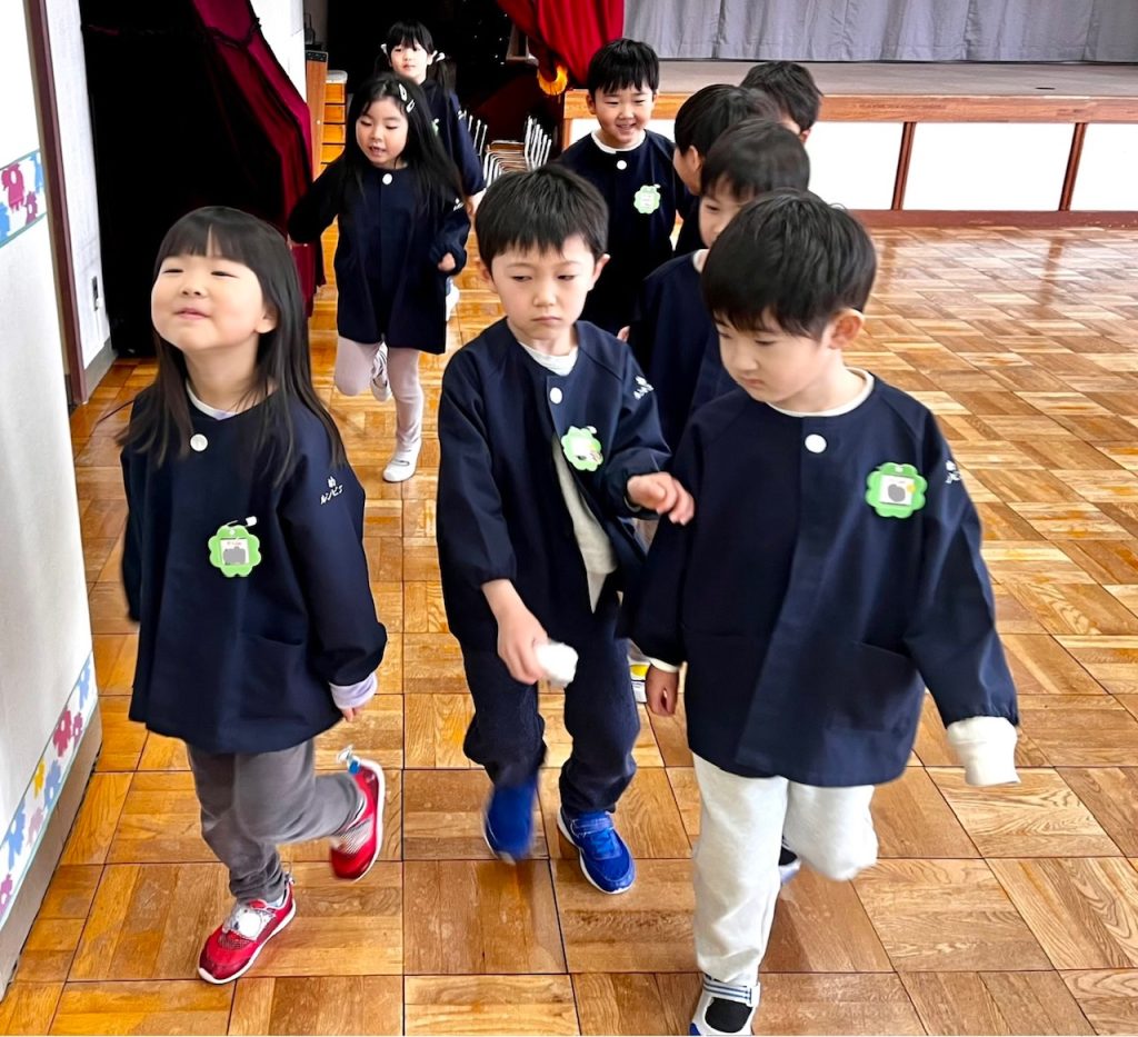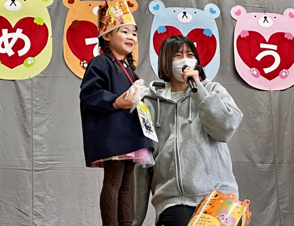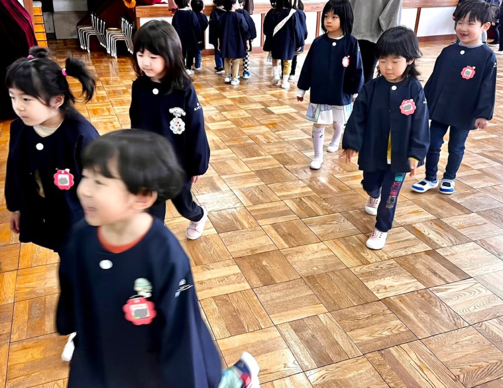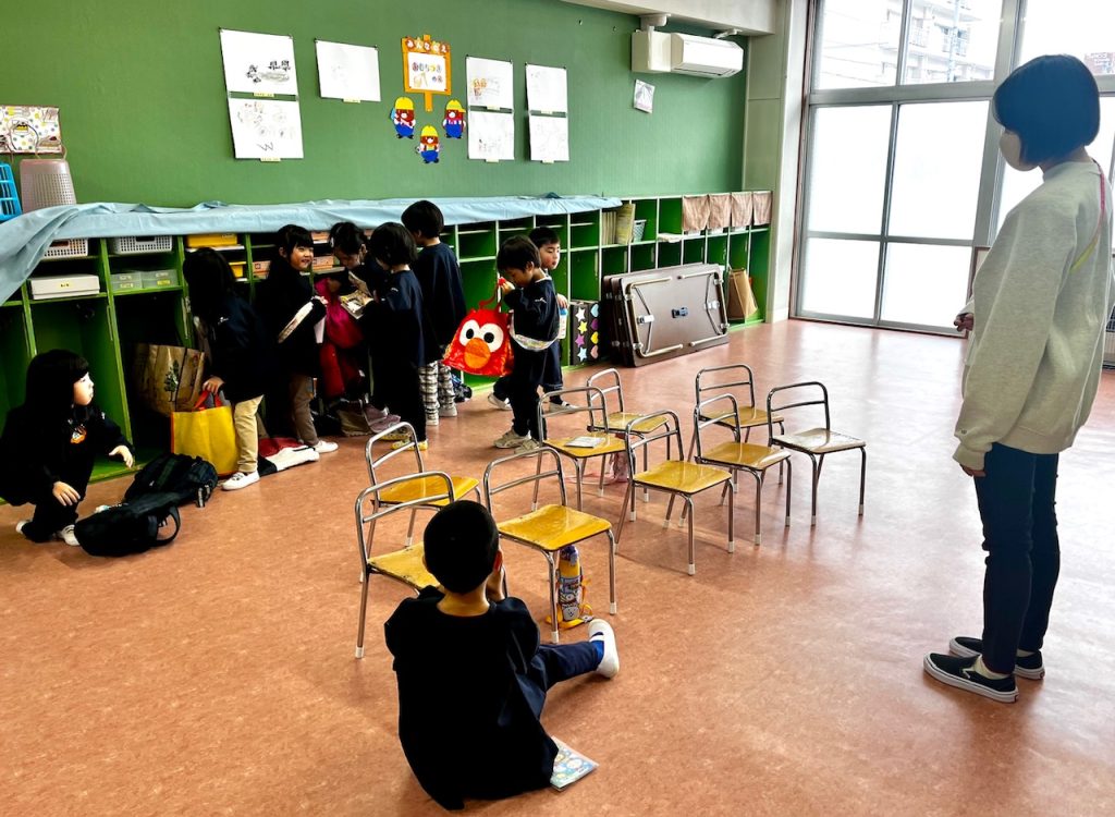 お遊戯場での終業式のあとは、お部屋で配布物を貰いました。