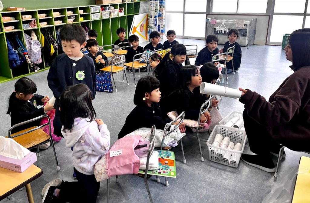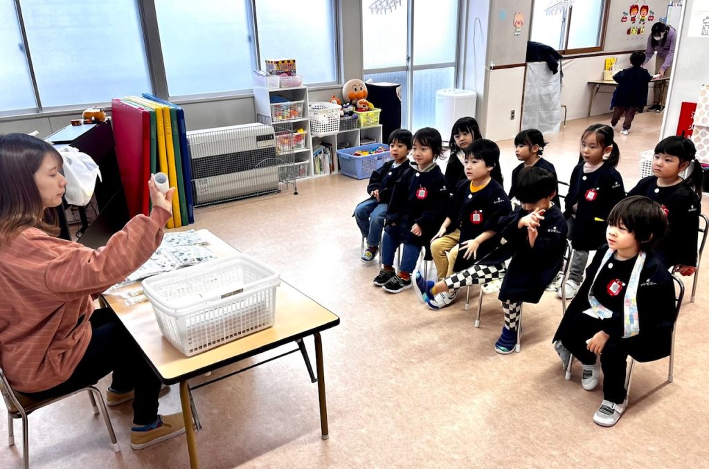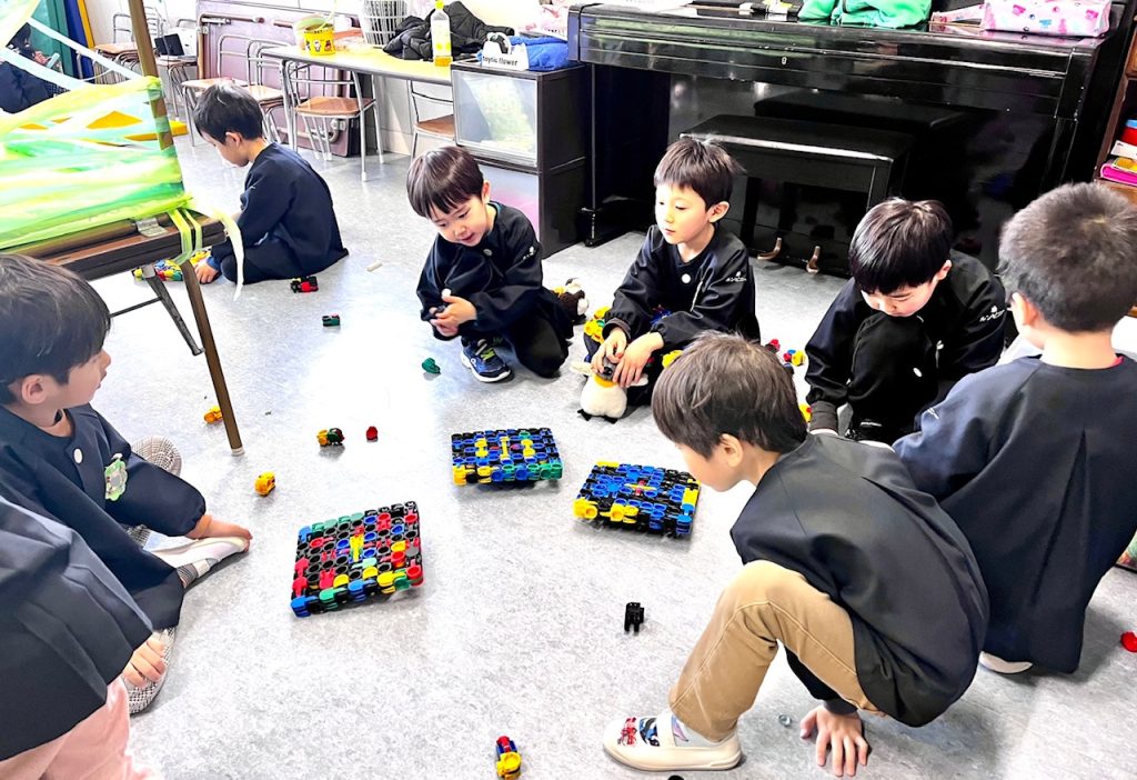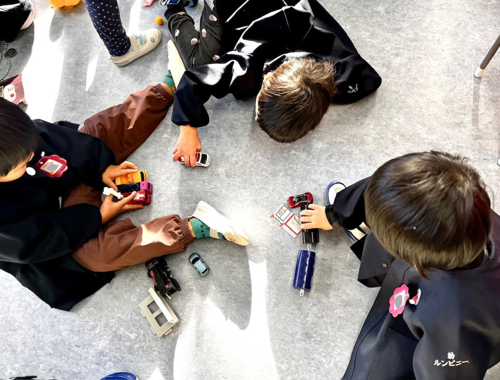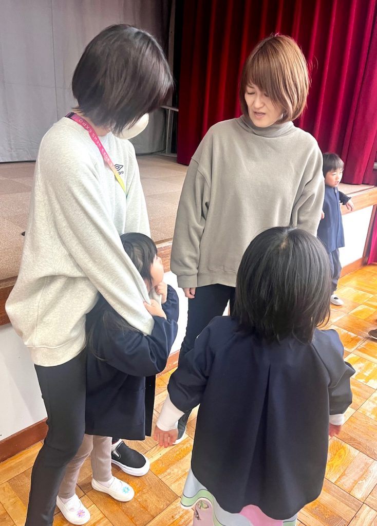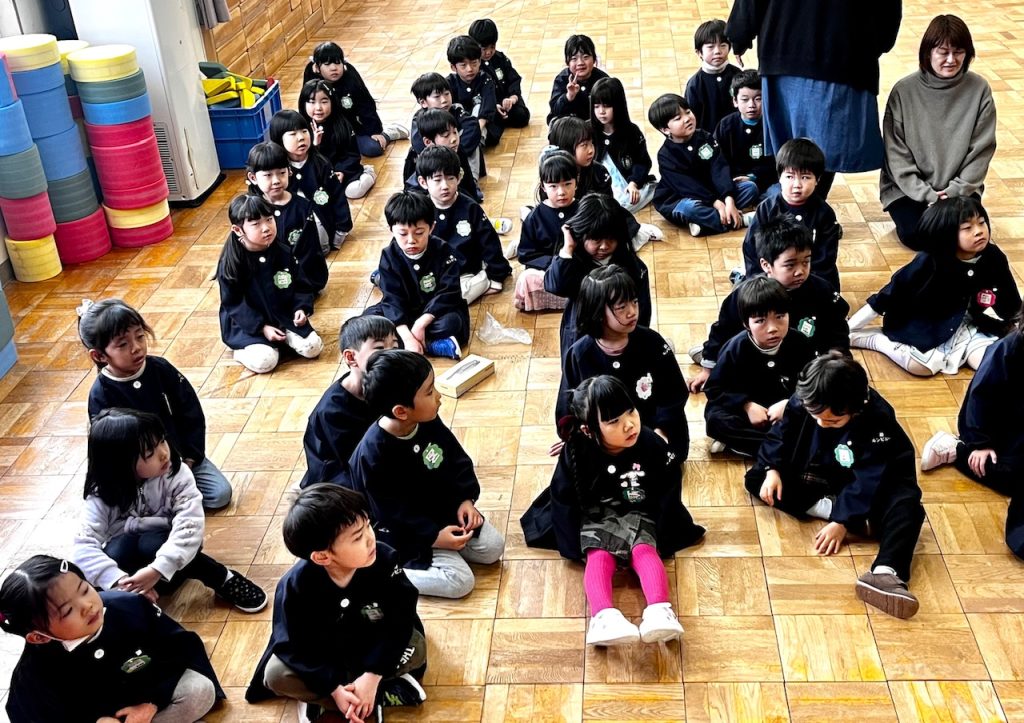 お遊戯場での終業式のあとは、お部屋で配布物を貰いました。