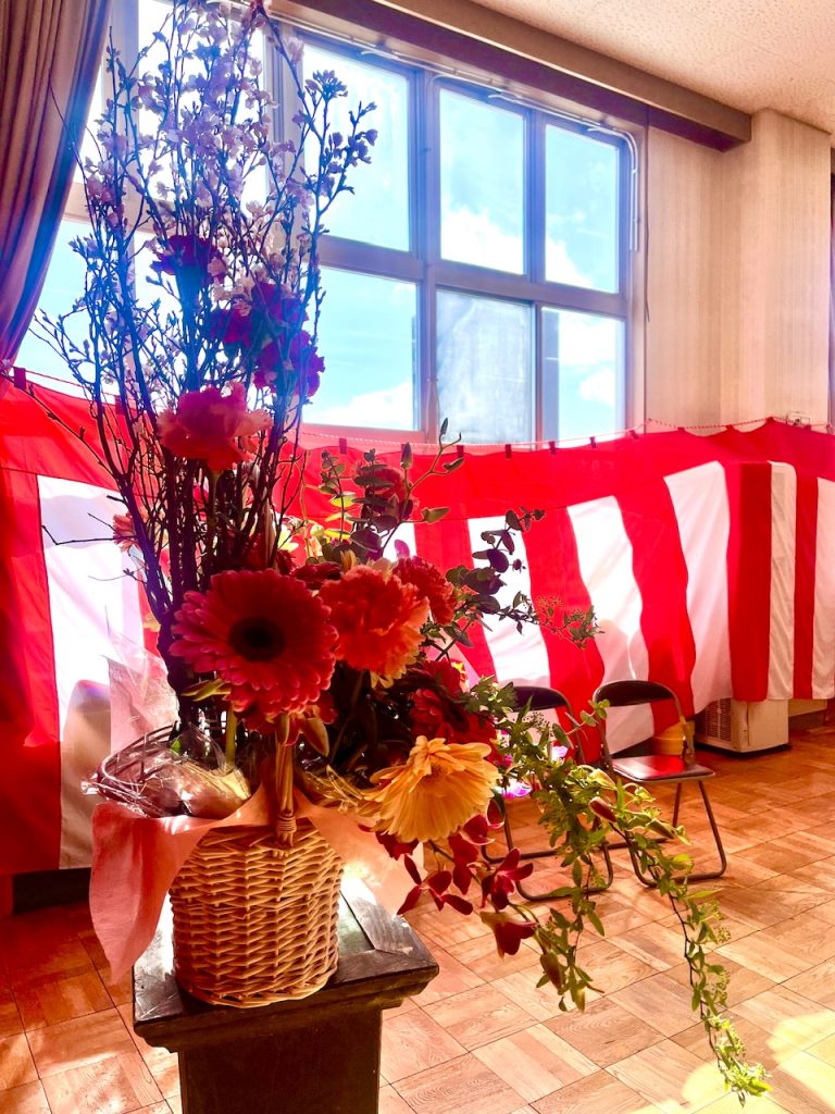 先生にお花をつけてもらっていざお遊戯場へ❗️